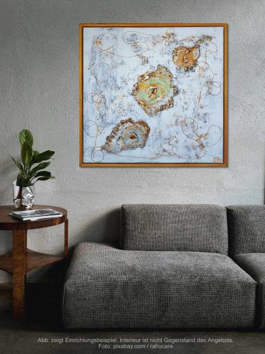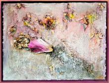 Musik und Malen Format 30x40 mit echten Blüten, Zweigen und Naturmaterialien