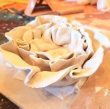 Gestalten einer individuellen Keramik/ Collage mit Rinde, Stoff und Naturmaterialien